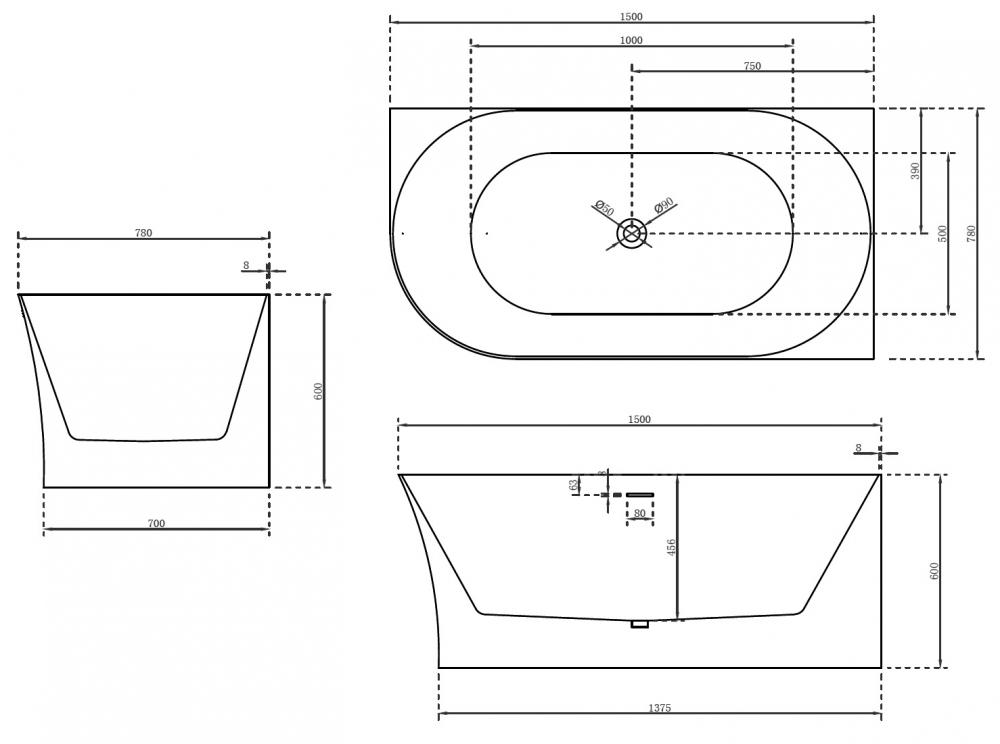 ванны, душевые кабины, душевые поддоны, душевые уголки/ограждения – 700 руб.