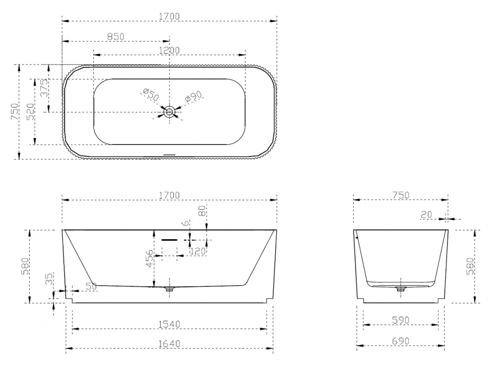 Акриловая ванна ABBER AB9363-1.7 белая