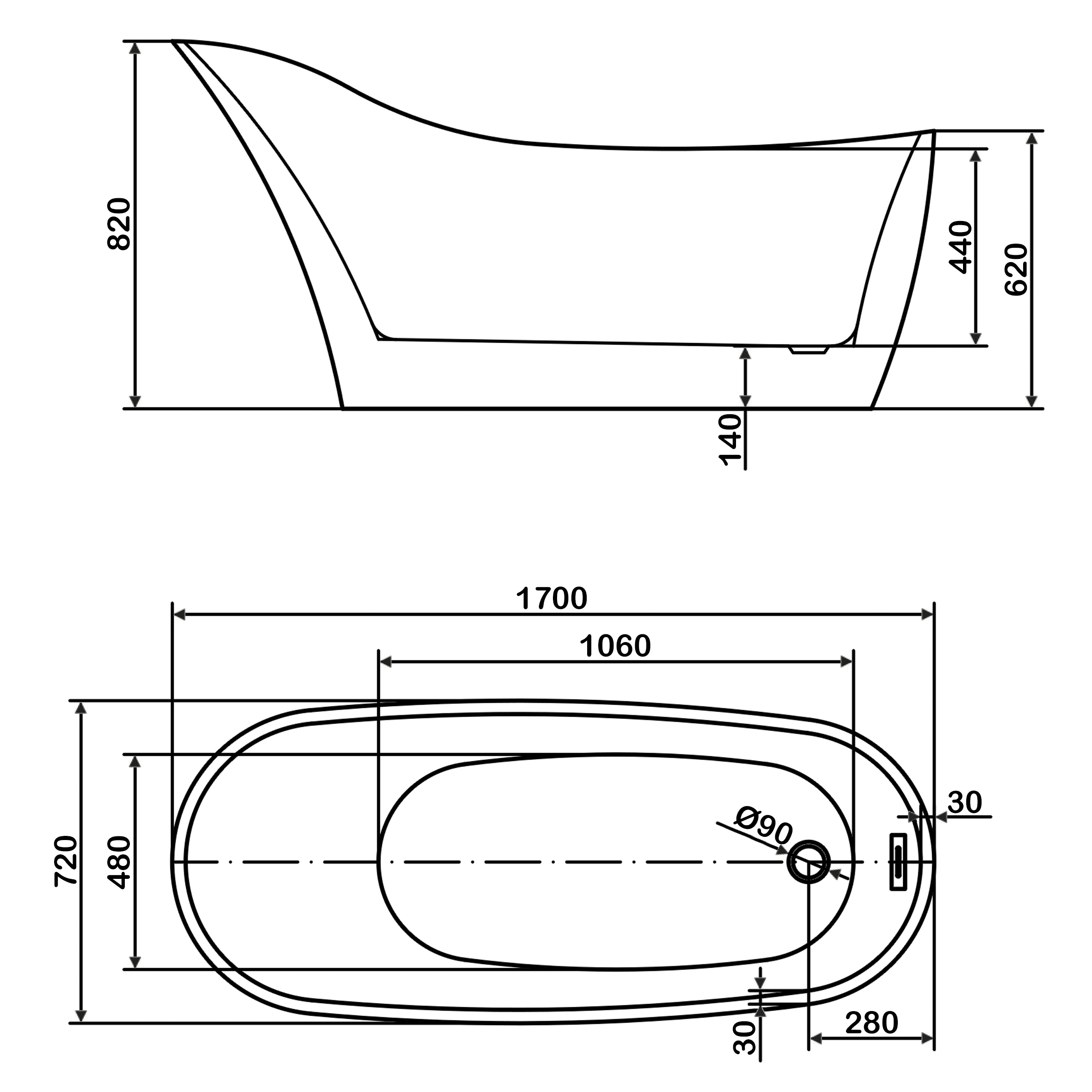 Ванна акриловая отдельностоящая 1700 мм Swedbe Vita 8820