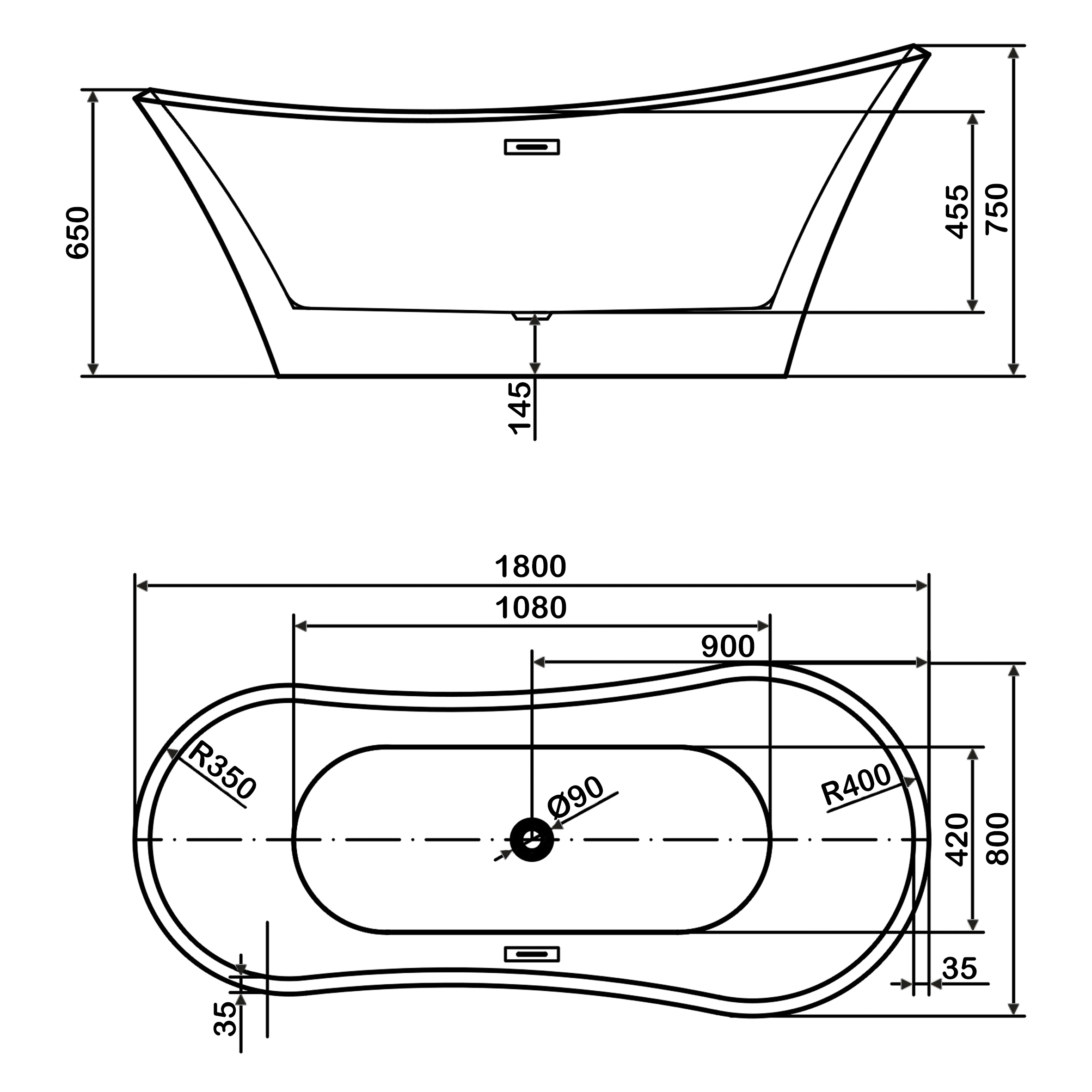 Ванна акриловая отдельностоящая 1800 мм Swedbe Vita 8834