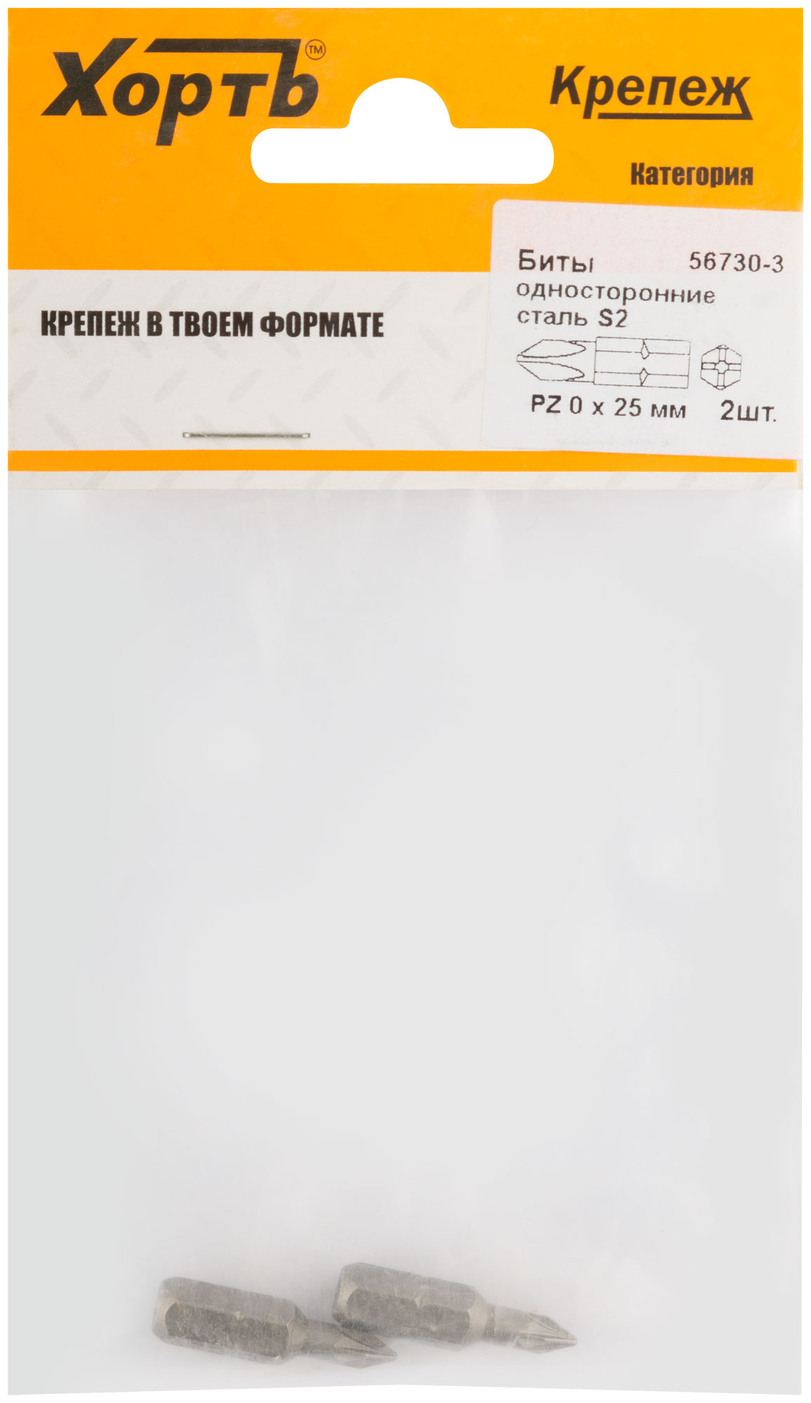Биты односторонние сталь S2, РZ 0 х 25 мм 2 шт. (фасовка)