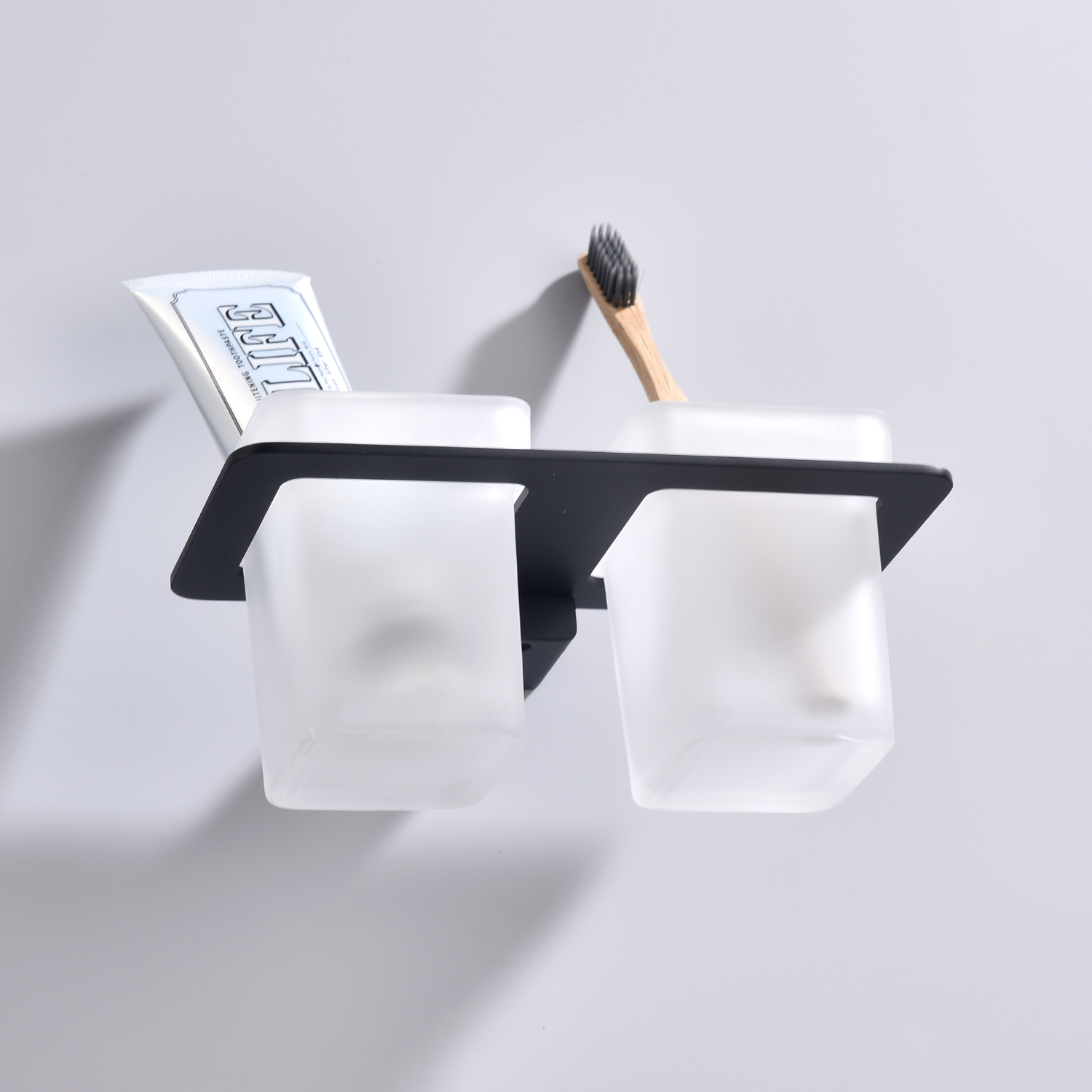 Дизайн: Держатель выполнен в черном цвете, что придает ему современный и элегантный вид. Лаконичный дизайн стаканов гармонично сочетается с любым интерьером ванной комнаты.
