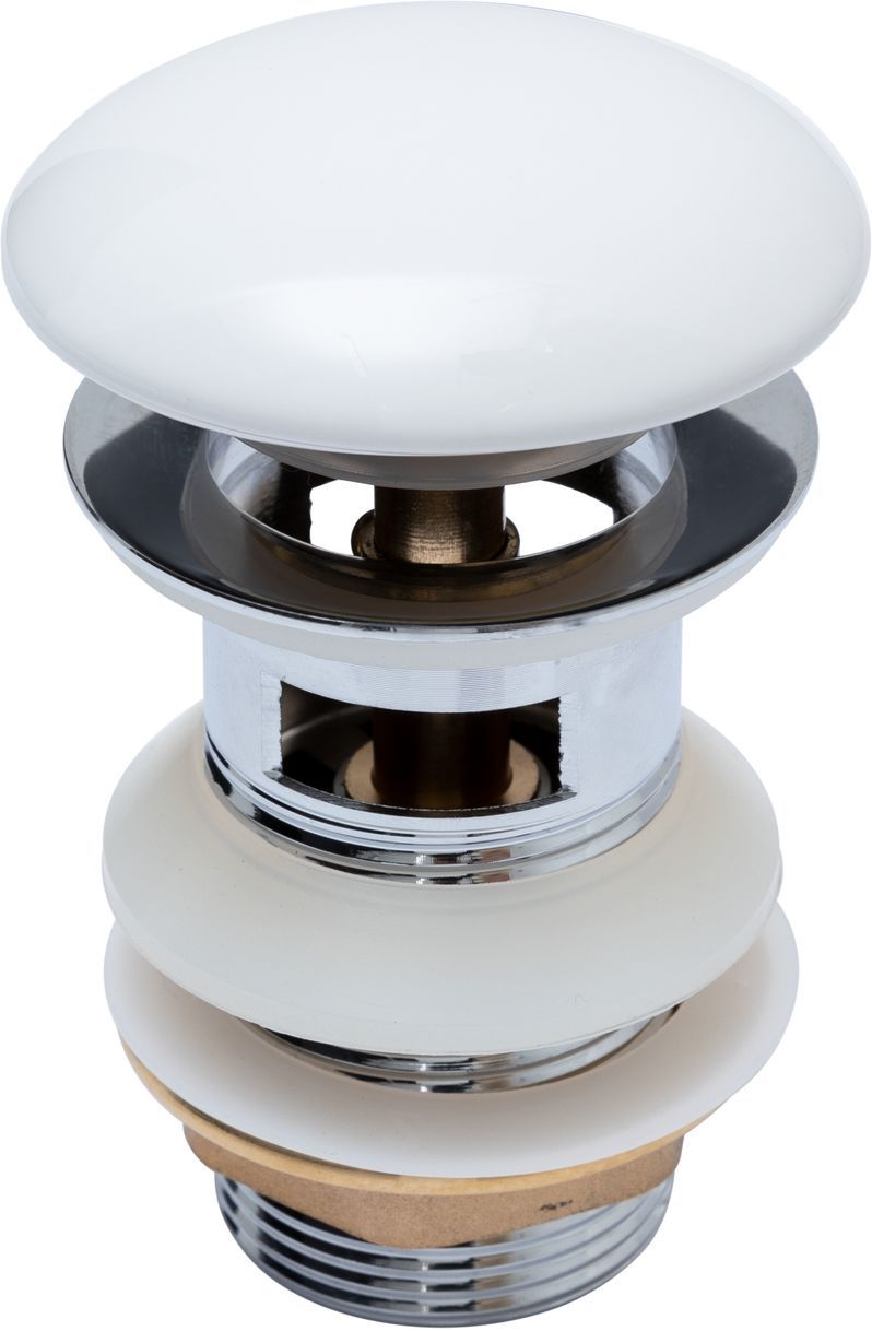 Донный клапан латунь с переливом крышка керамика белый (333927)