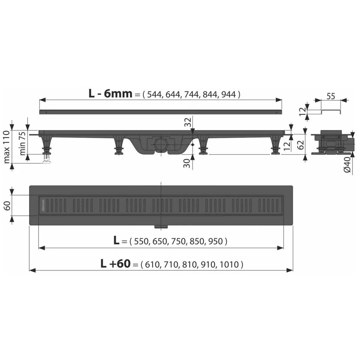 Душевой лоток smart из нержавеющей стали, черный