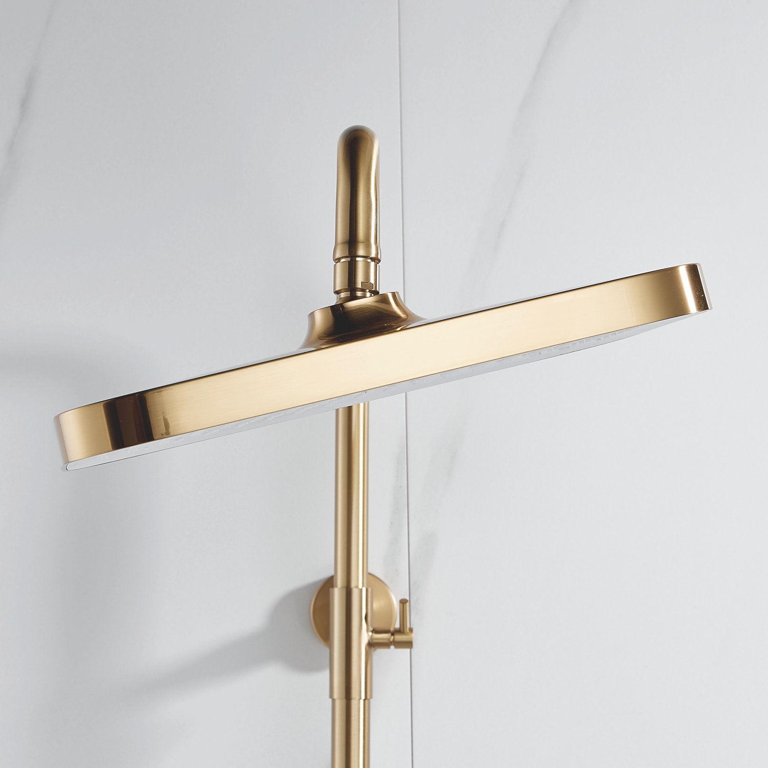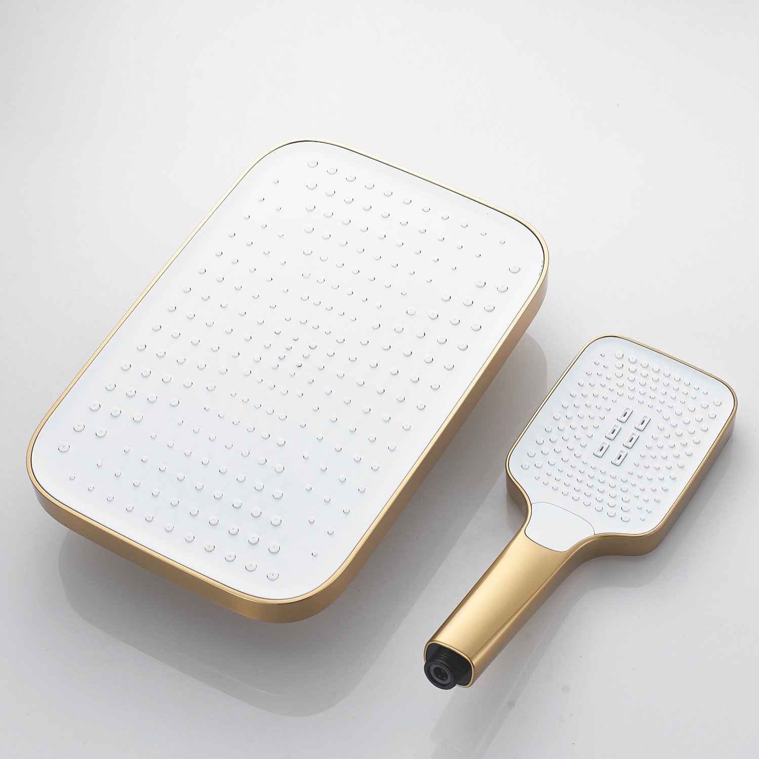 Верхний душ имеет размеры 315х210 мм и изготовлен из прочного ABS-пластика, устойчивого к воздействию высоких температур и влажности. Встроенный шарнир позволяет регулировать угол наклона душа, обеспечивая комфортное использование. Самоочищающиеся силиконовые форсунки предотвращают образование известкового налета и обеспечивают равномерный и мягкий поток воды.