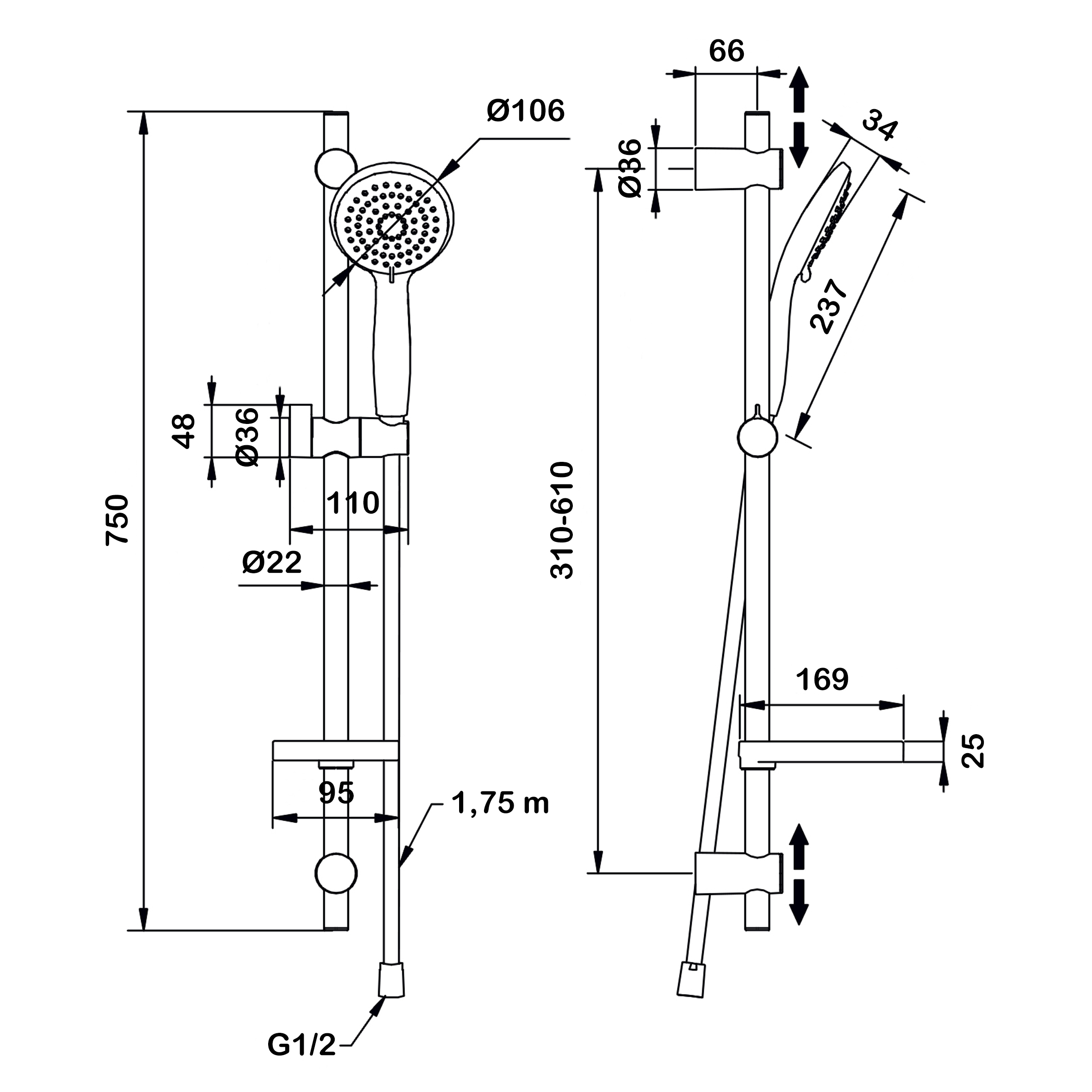 - шланг PVC с металлической структурой и системой против скручивания шланга;<br>