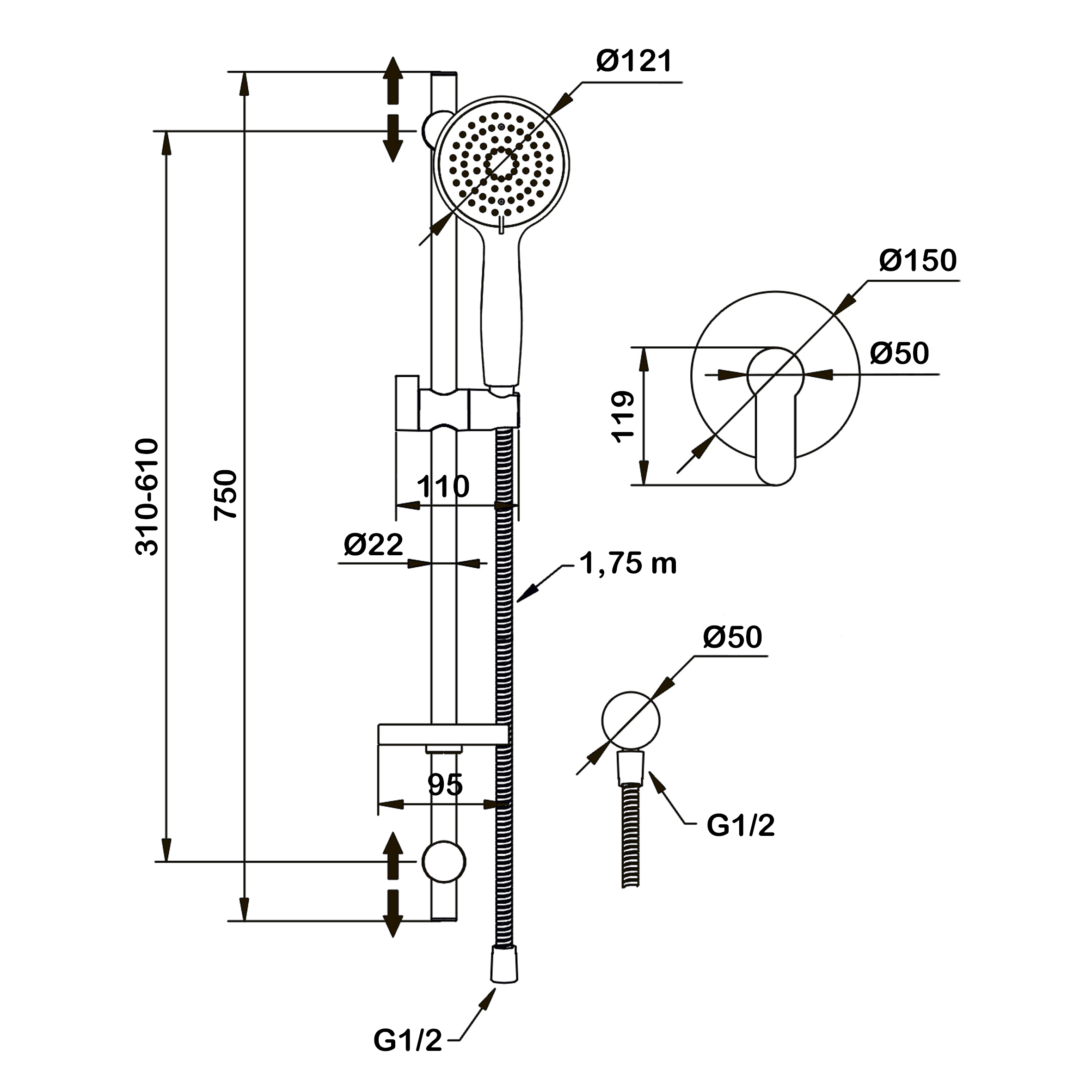 - ручной душ, с трёхрежимной лейкой;<br>