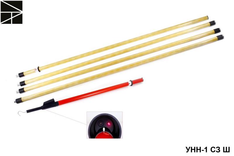 Указатель комплектован 4–х звенной сборной изолирующей штангой из стеклопластика длиной 7,0 м, что позволяет произвести пофазное определение напряжения касанием токоведущих частей воздушных линий с поверхности земли, без подъема на опору ВЛ.