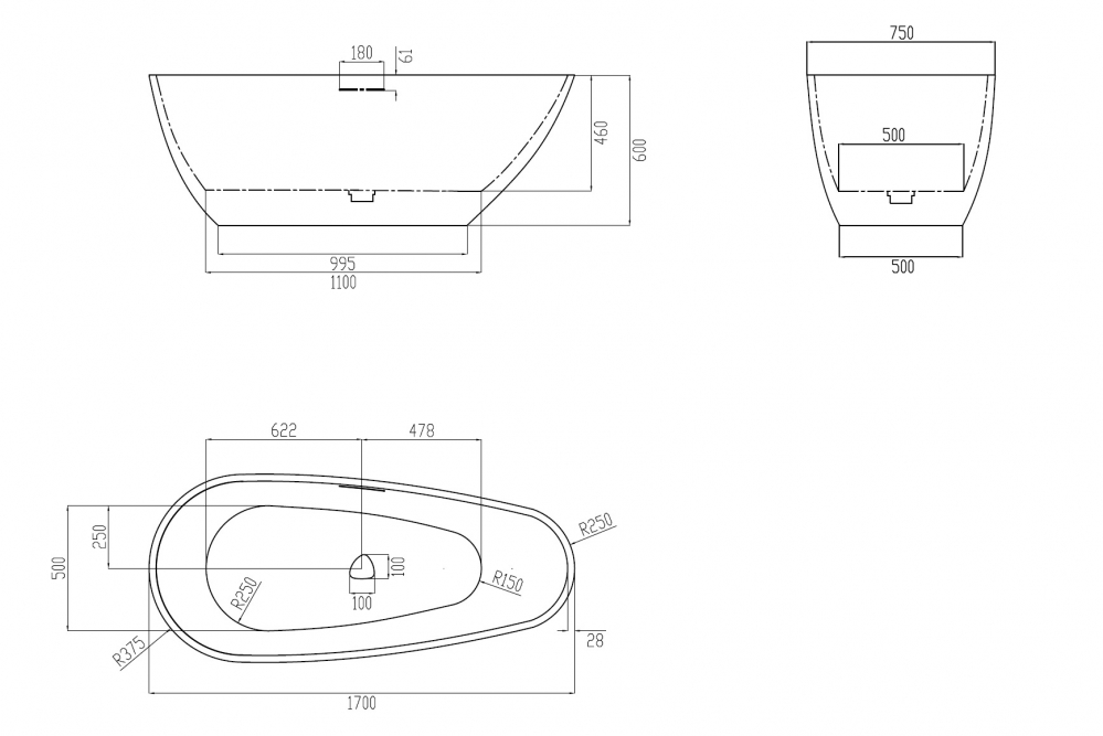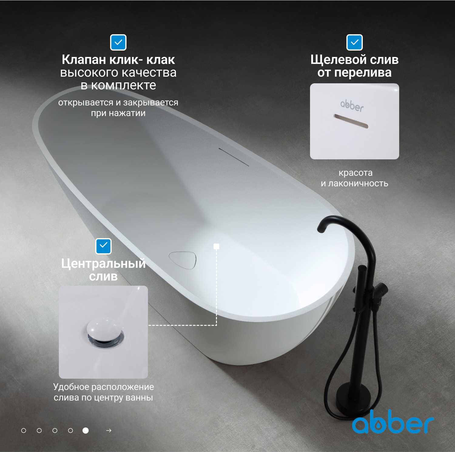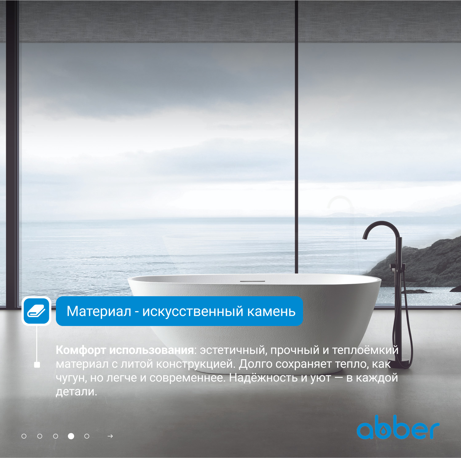 Ванна из искусственного камня ABBER Dortmund AM9911 белая матовая