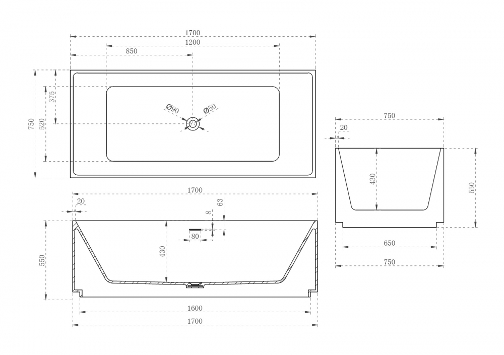 Ванна из искусственного камня ABBER Stein AS9602 белая матовая