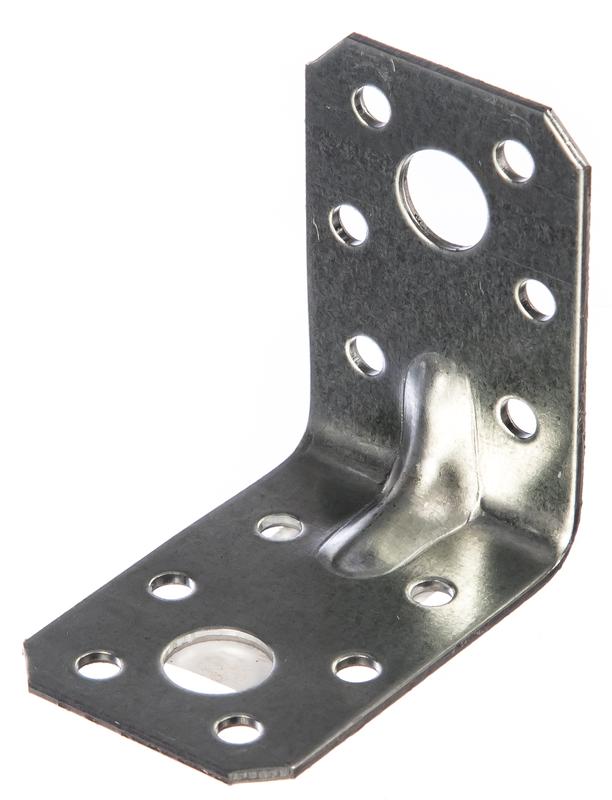Особенности: выдерживает высокие нагрузки, обеспечивает максимальную прочность и жесткость соединения. Наличие ребер жесткости позволяет фиксировать элементы строго под углом 90°. Благодаря тому, что на уголке имеются отверстия различного диаметра (5 и 12 мм), для монтажа можно использовать саморезы и гвозди.