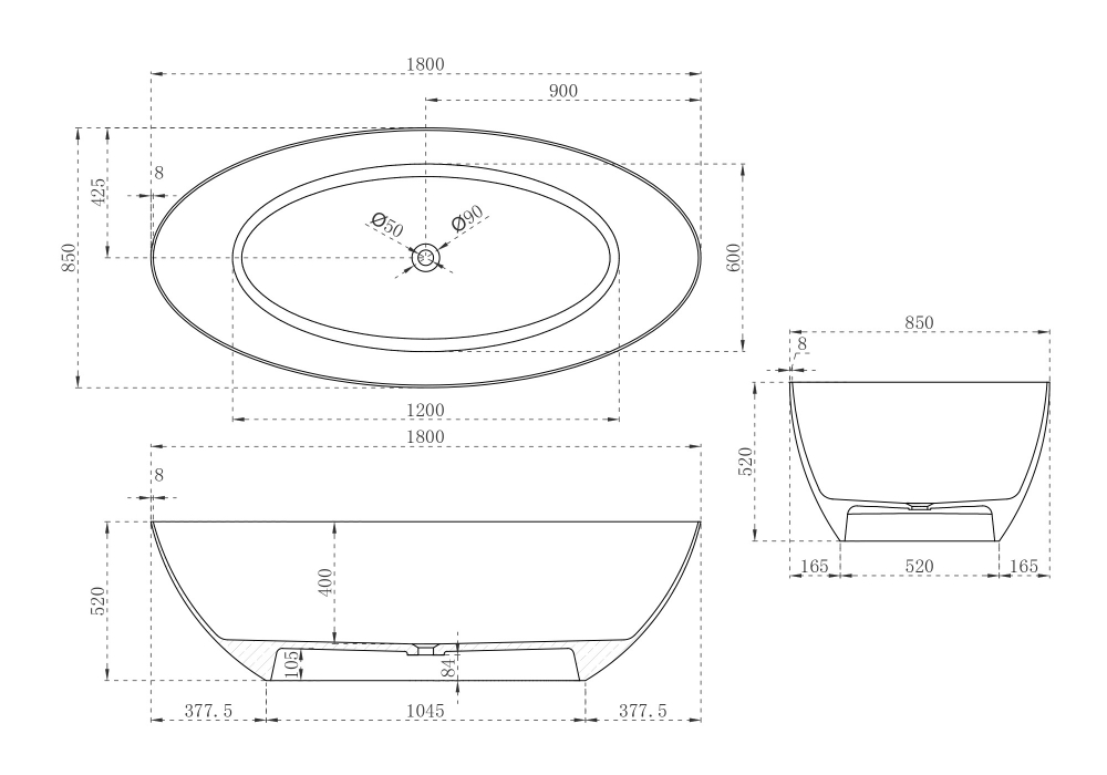 Карбоновая ванна ABBER Karbon AK9002-1.8 черная