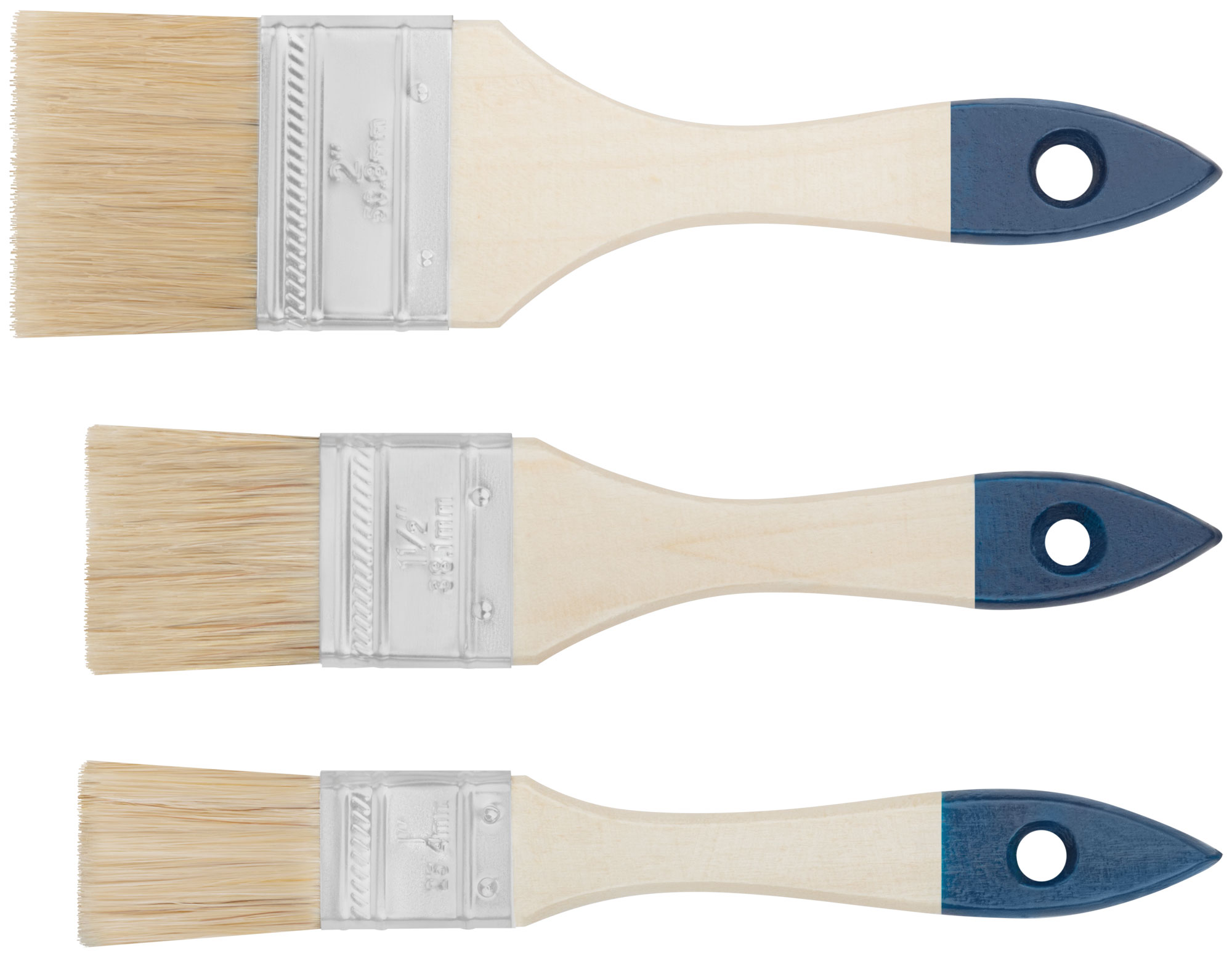 Кисти флейцевые, синяя ручка, набор 3 шт.( 1", 1,5", 2" )