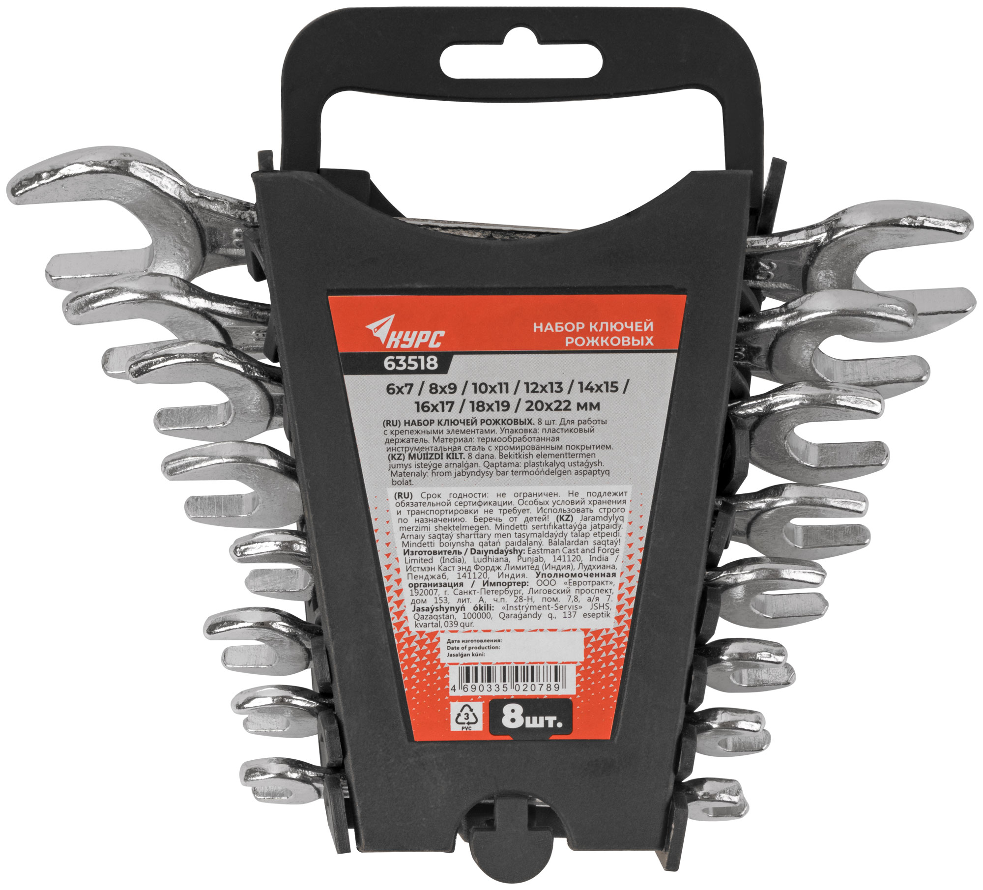 Ключи рожковые, набор 8 шт. ( 6-22 мм ) в пластиковом держателе