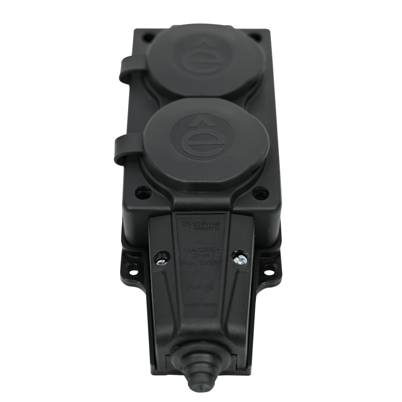 Колодка удлинителя 2-м MultiSet 16А 250В IP44 с заземл. каучук черн. SE MST4102BK