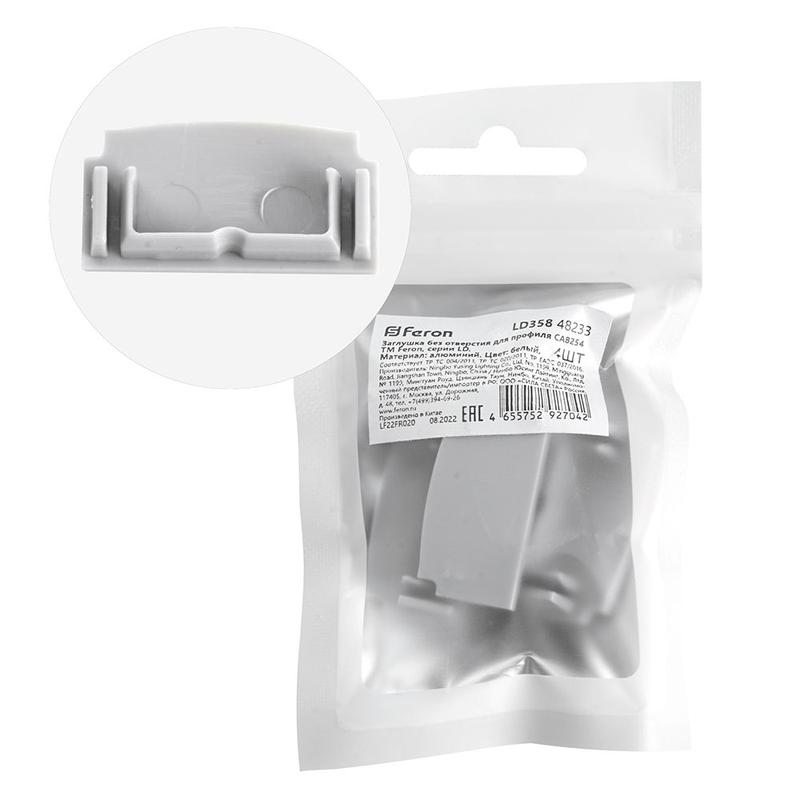 Заглушка без отверстия для профиля CAB254 LD358 (уп.4шт) FERON 48233