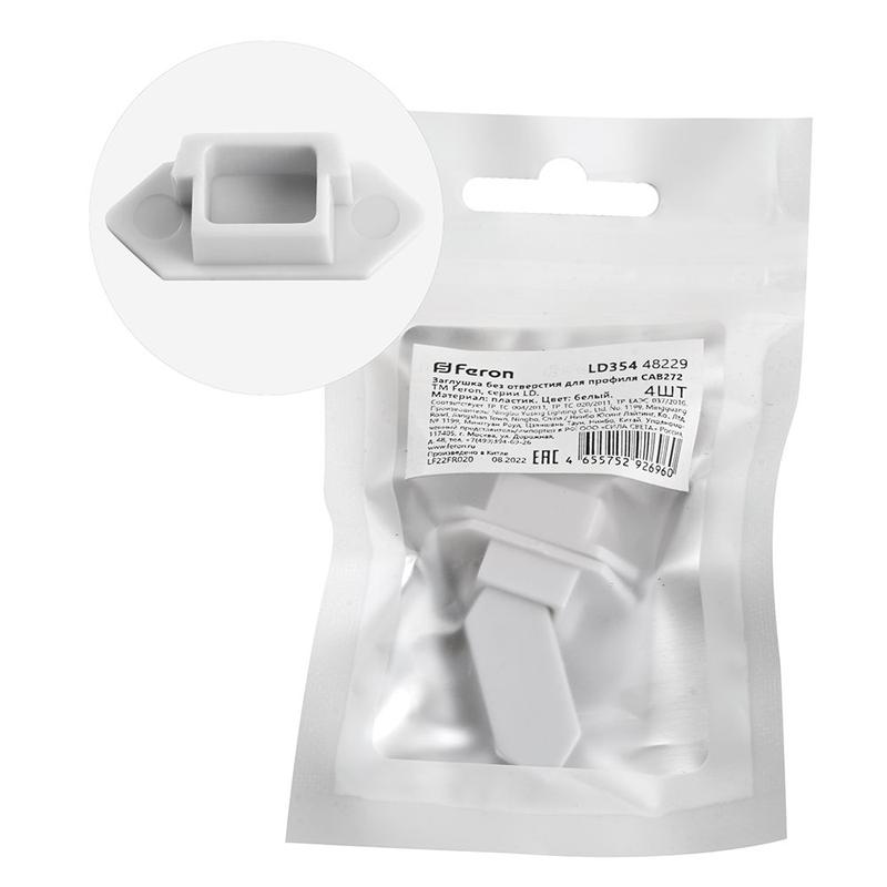 Заглушка без отверстия для профиля CAB272 LD354 (уп.4шт) FERON 48229