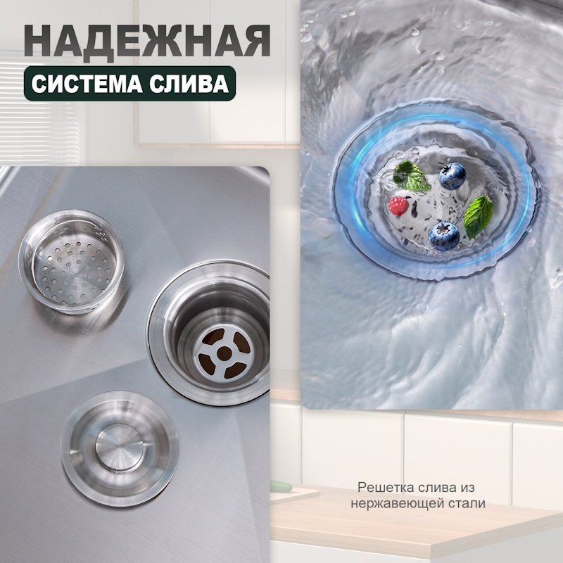 Толщина стали: верх - 3 мм / чаша - 0.6 мм