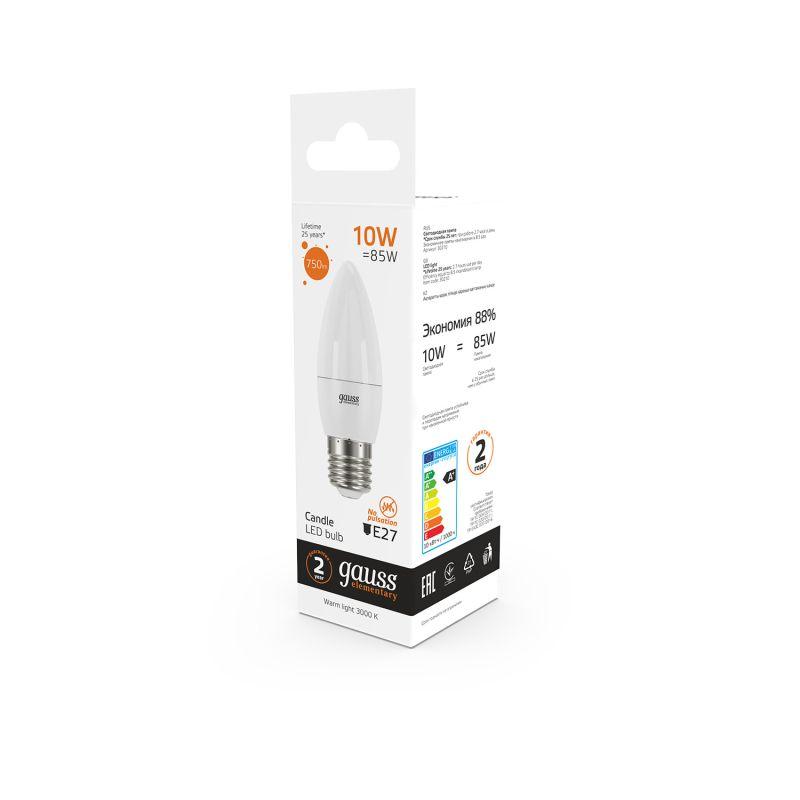 Лампа светодиодная Elementary 10Вт свеча 3000К тепл. бел. E27 750лм GAUSS 30210