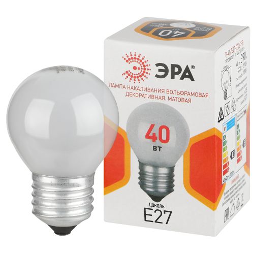 Лампа накаливания P45 40Вт шар матовая E27/E27 230В Эра Б0066392
