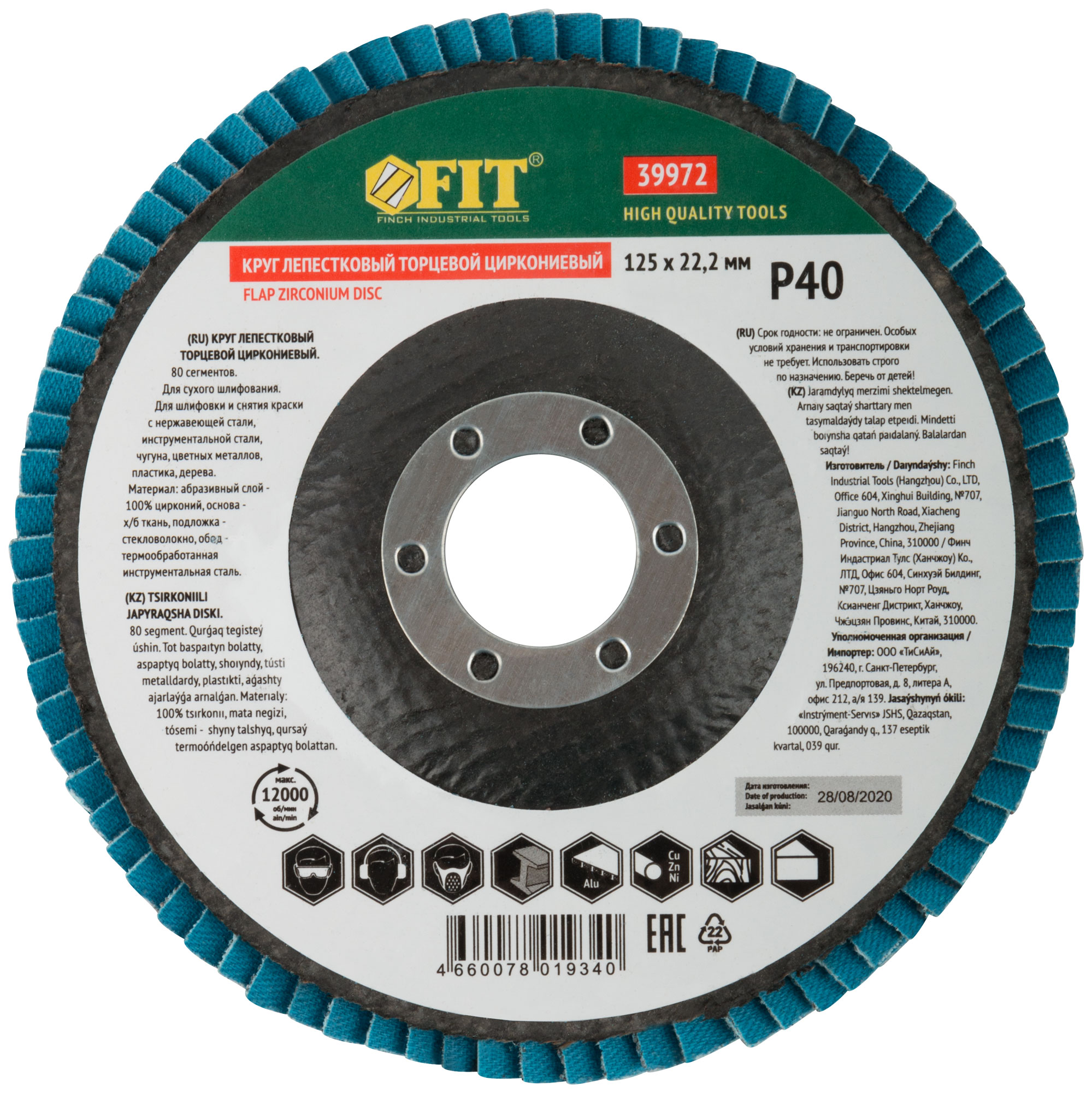 Круг лепестковый торцевой циркониевый плоский, 125 мм P 40