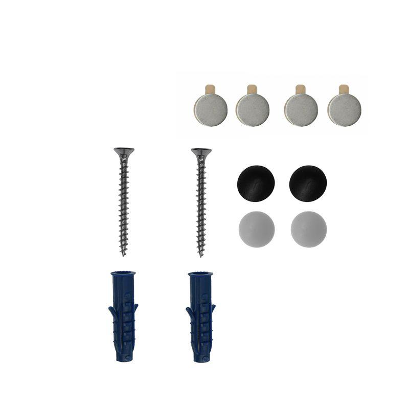 В комплекте поставляются все необходимые крепления для установки, а также заглушки, маскирующие шляпки винтов.