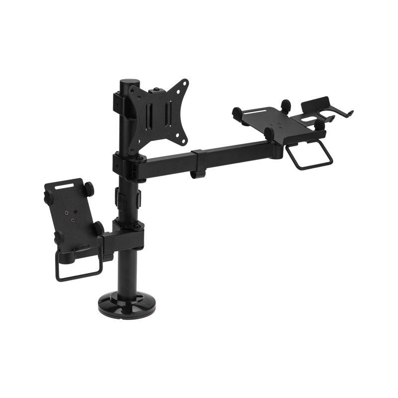 Кронштейн оснащен системой укладки кабеля вдоль корпуса, которая позволяет аккуратно уложить кабель, и тем самым, предотвратить спутывание проводов. Предназначен для настольного монтажа, крепление на струбцине позволяет быстро и легко установить кронштейн на рабочем месте.