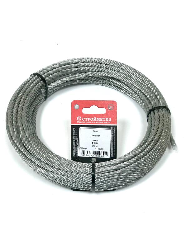 Трос стальной 6.0мм DIN 3055 цинк (уп.20м) подвес СТРОЙМЕТИЗ 4140090