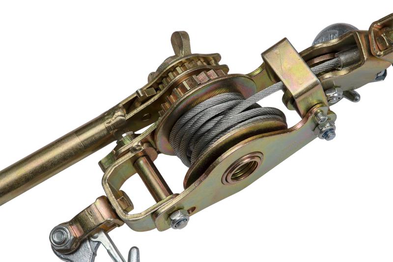 Рукоятка выполнена из металла, соединенная с храповым механизмом. Механзим оснащен тремя скоростями - нейтраль (блокирует заданное тяжение), основная (производит натяжение тали), реверс (снижает тяжение тали).