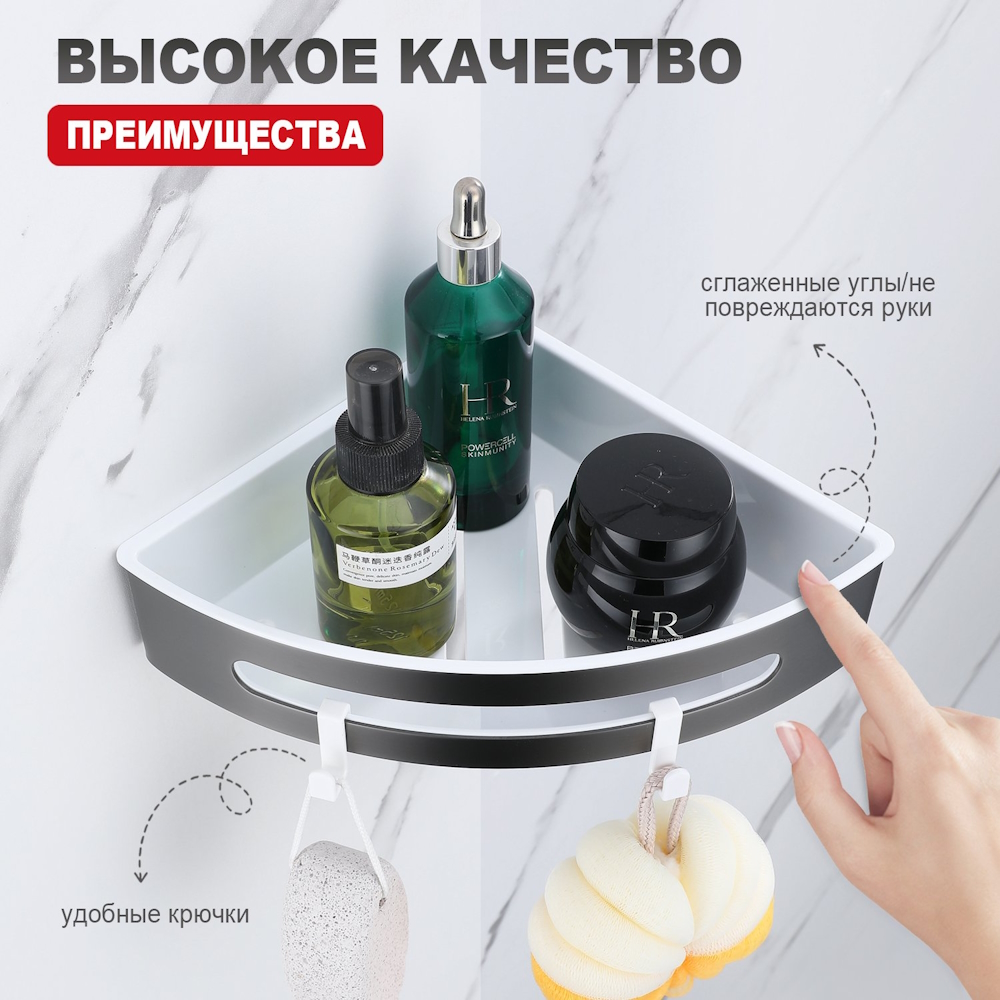 Полка для ванной комнаты угловая Raglo R340.01.09, графит