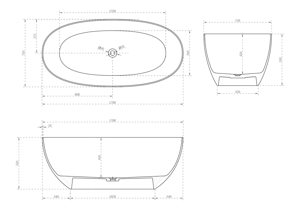 Карбоновая ванна ABBER Karbon AK9001-1.7 черная