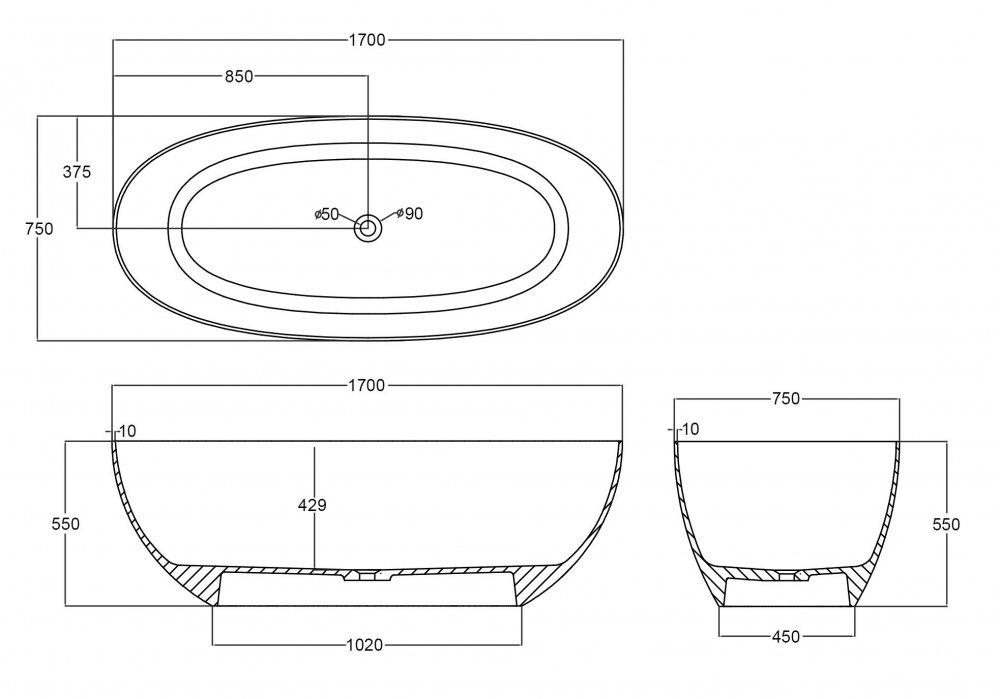 Прозрачная ванна ABBER Kristall AT9703Onyx черная