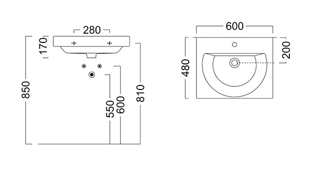 Раковина BUONGIORNO подвесная/мебельная 60, белая глянцевая