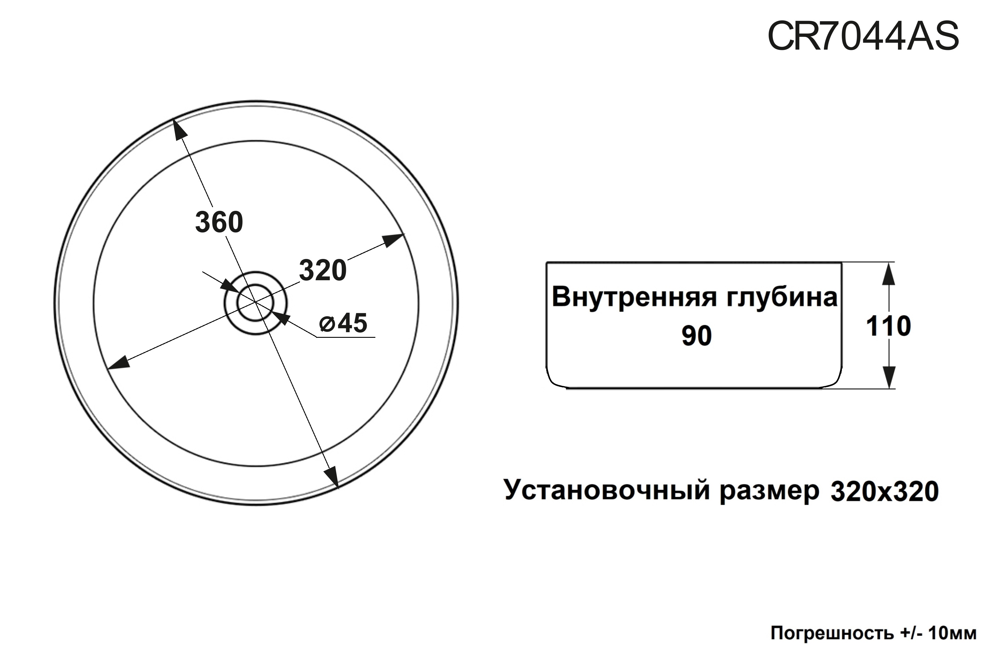 Раковина CR7044AS накладная, золото, круглая 360х360х120 Ceruttispa