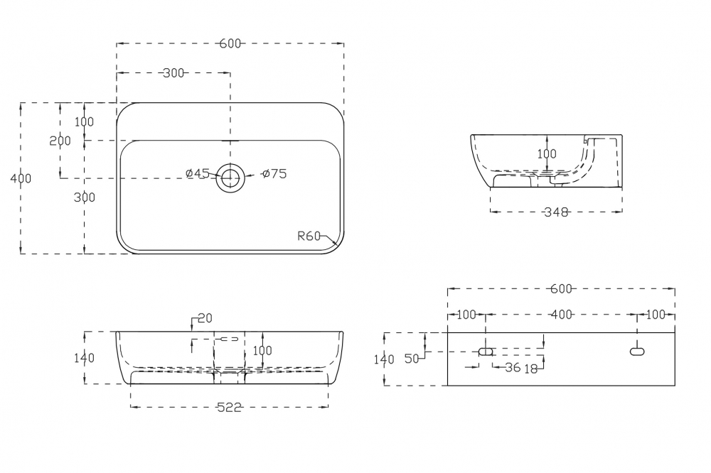 Раковина подвесная ABBER Stein AS2654 белая матовая