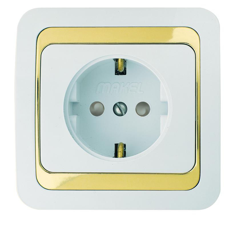Розетка Mimoza с заземл. с защитой от детей с зол. вставкой Makel 12258