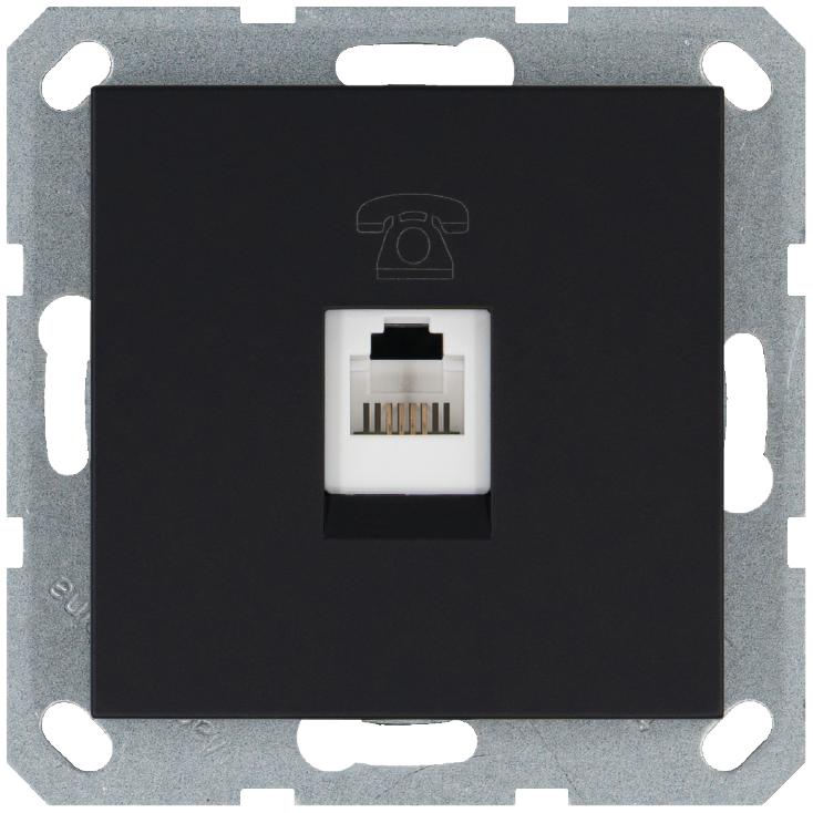 Розетка телефонная 1-м RJ11 механизм черн. матов. soft touch JasmartG6101PB