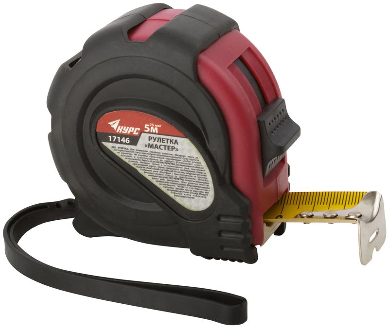 Рулетка Мастер 5мх25мм прорезиненный корпус КУРС 17146
