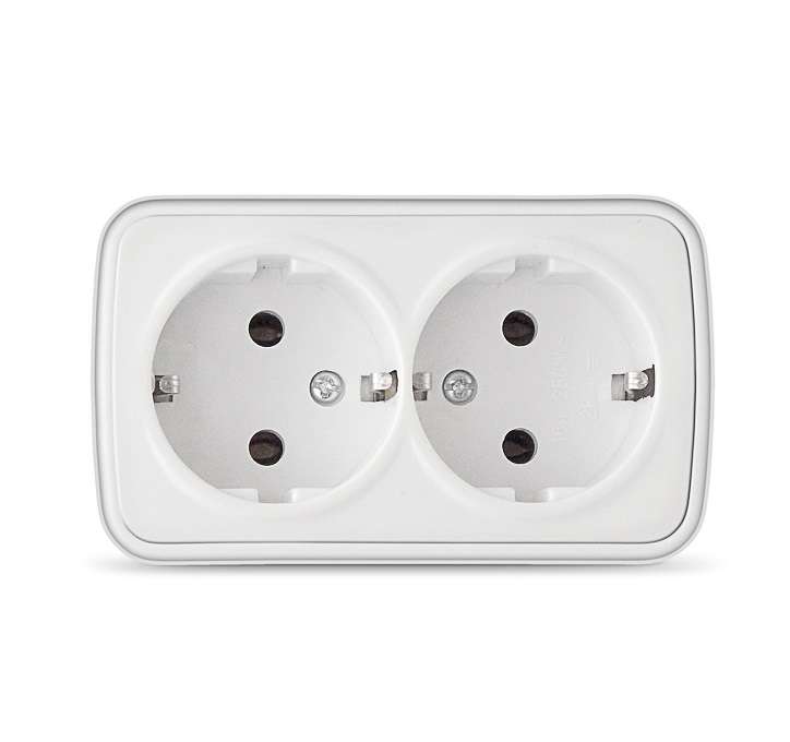 Розетка 2-м ОП Электра 16А IP20 с заземл. бел. Союз 0020