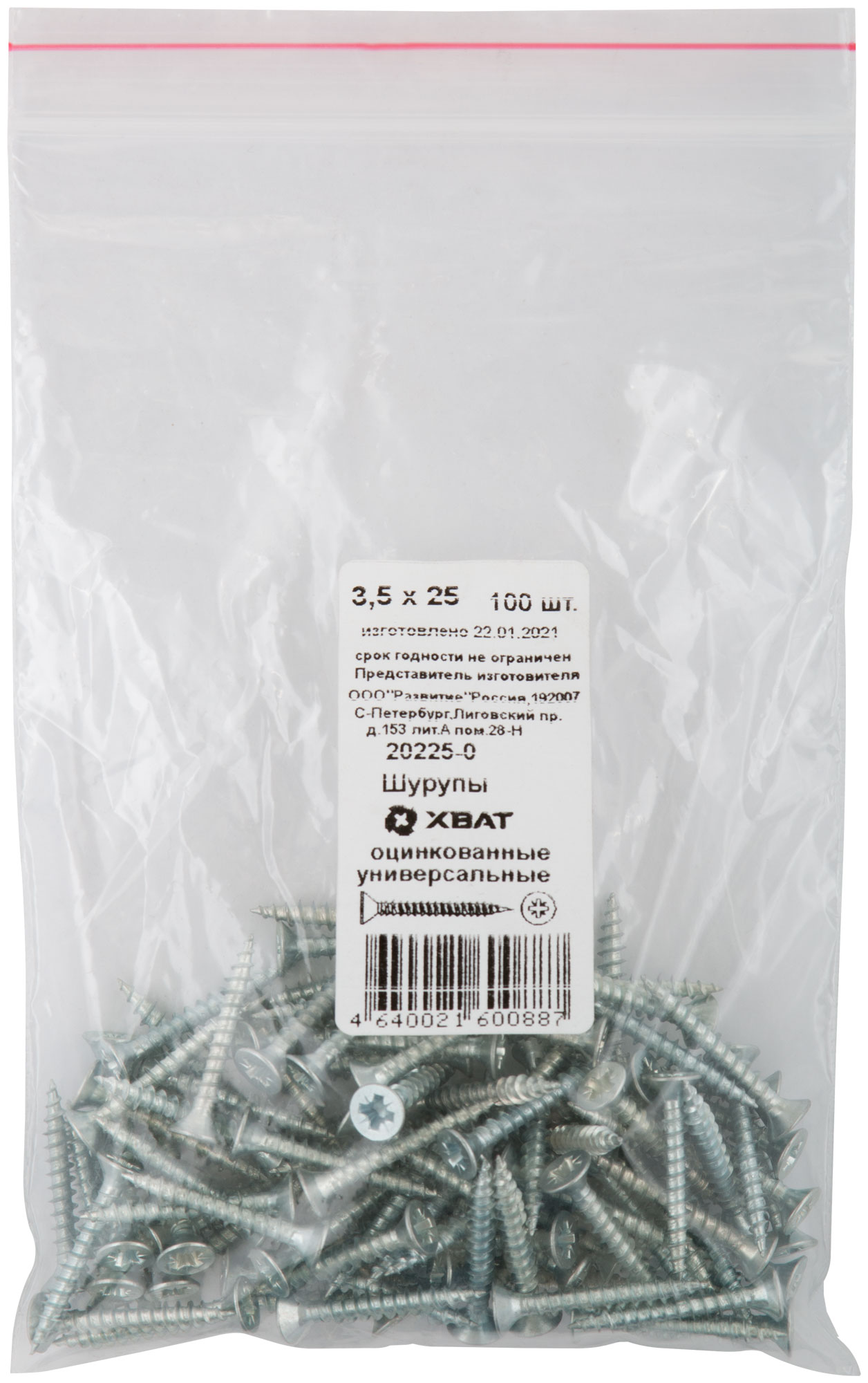 Шурупы оцинкованные, универсальные 3,5 х 25 100 шт Фасовка