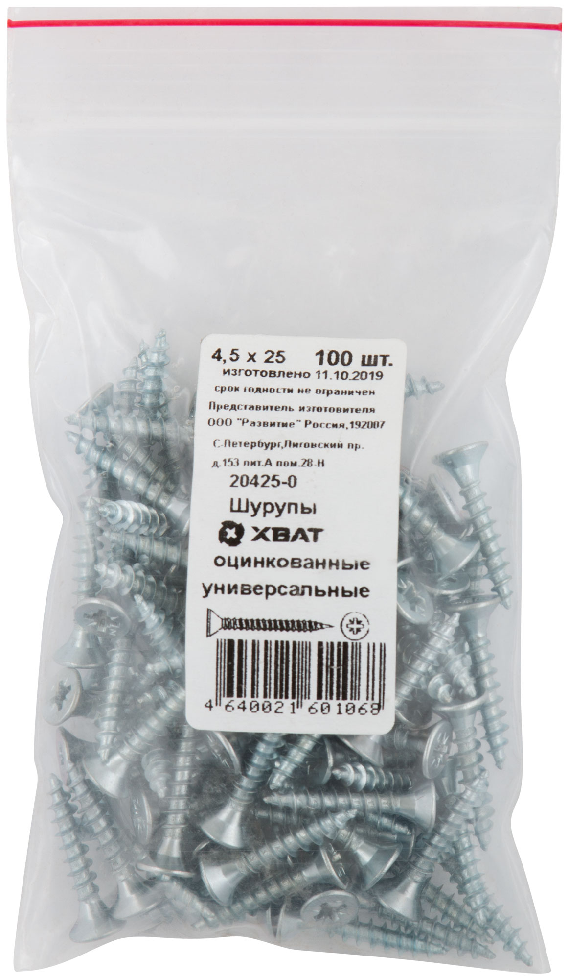 Шурупы оцинкованные, универсальные 4,5 х 25 100 шт Фасовка