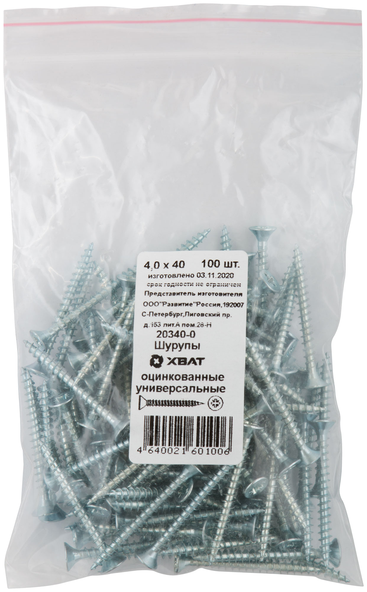 Шурупы оцинкованные, универсальные 4 х 40 100 шт Фасовка
