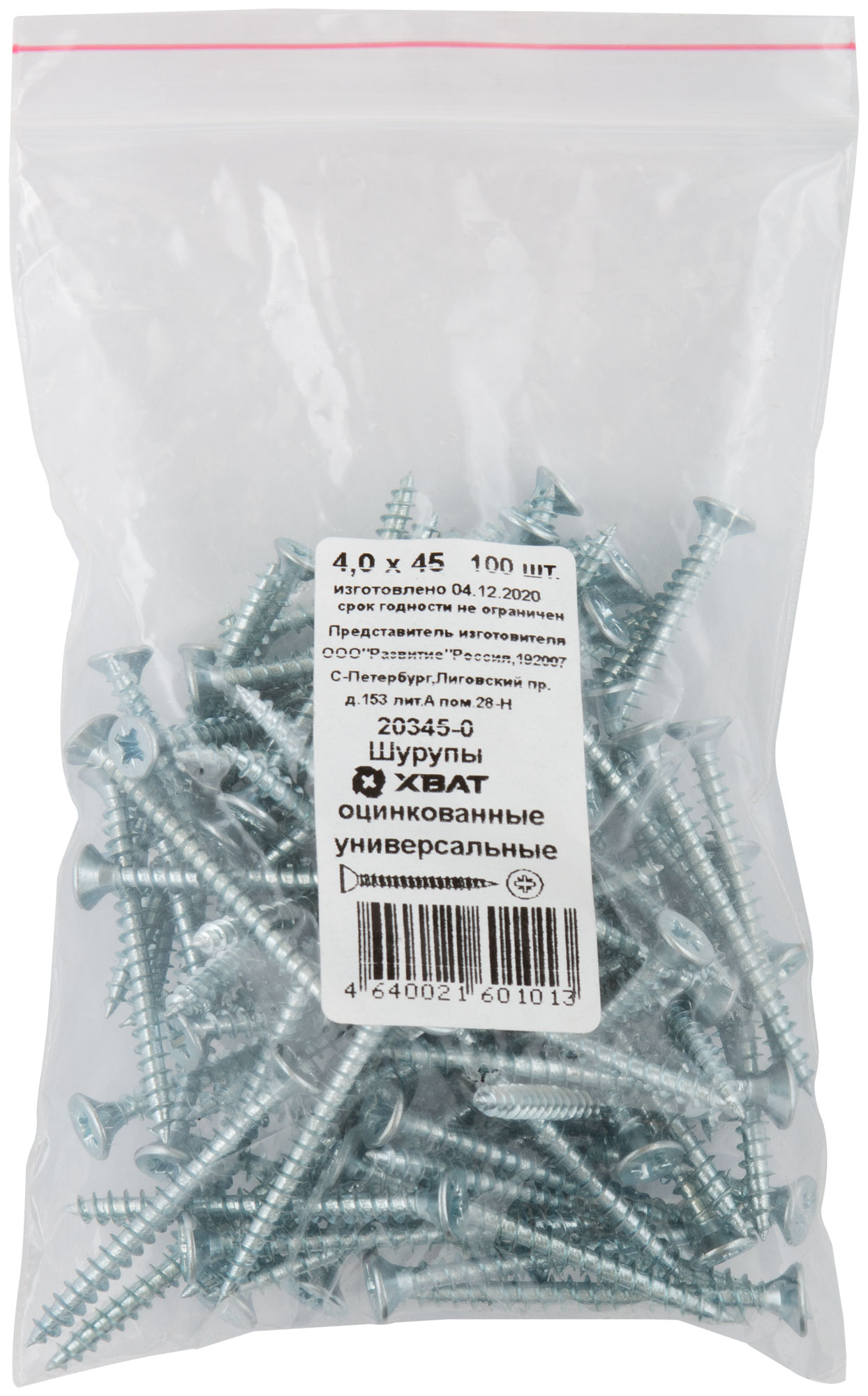Шурупы оцинкованные, универсальные 4 х 45 100 шт Фасовка