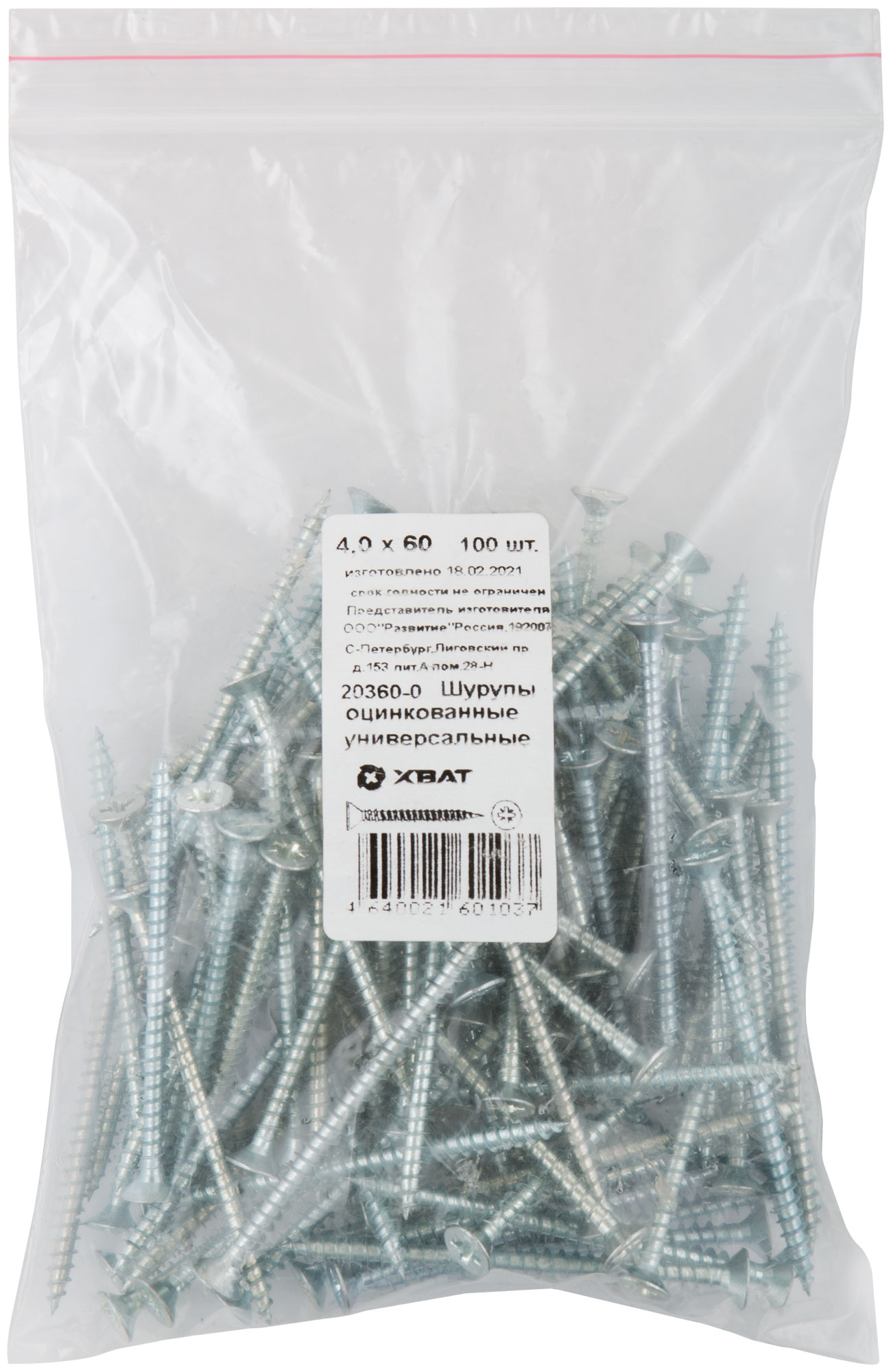 Шурупы оцинкованные, универсальные 4 х 60 100 шт Фасовка