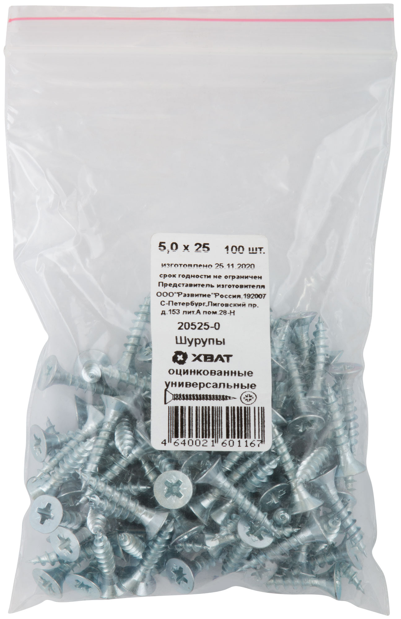 Шурупы оцинкованные, универсальные 5 х 25 100 шт Фасовка