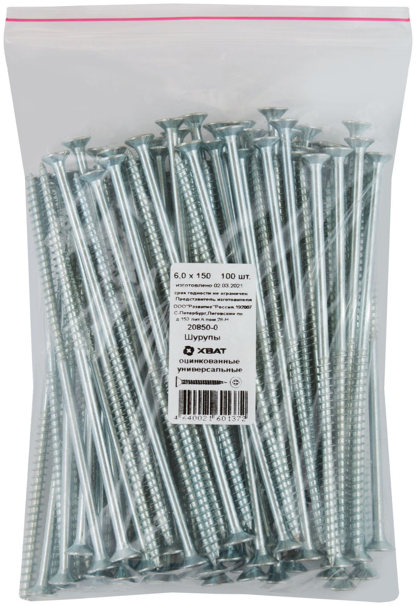 Шурупы оцинкованные, универсальные 6 х 150 100 шт Фасовка