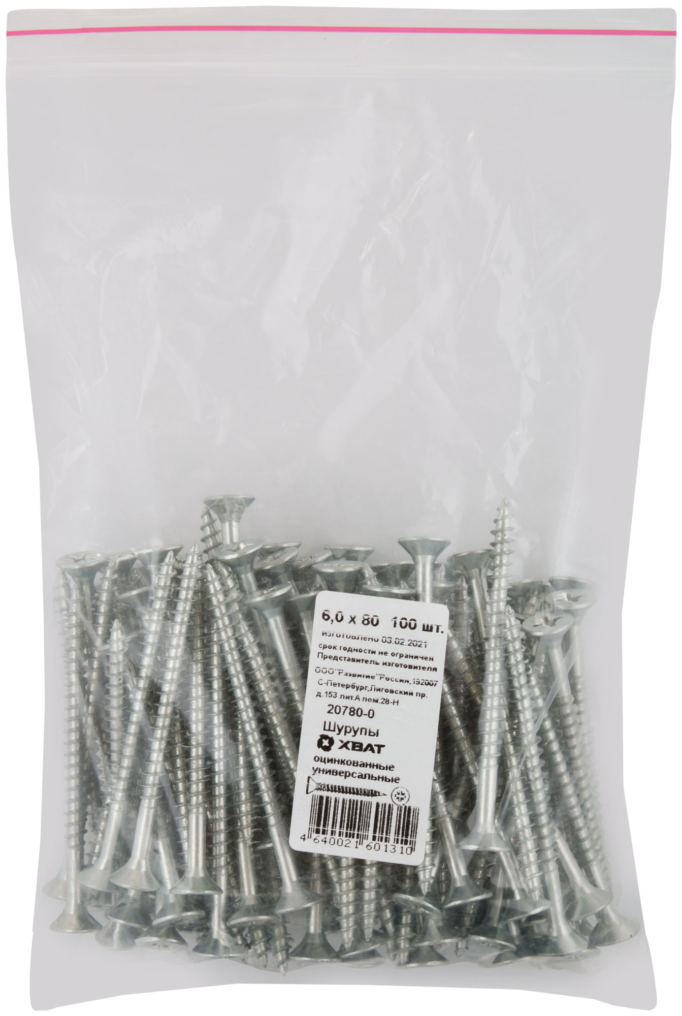 Шурупы оцинкованные, универсальные 6 х 80 100 шт Фасовка