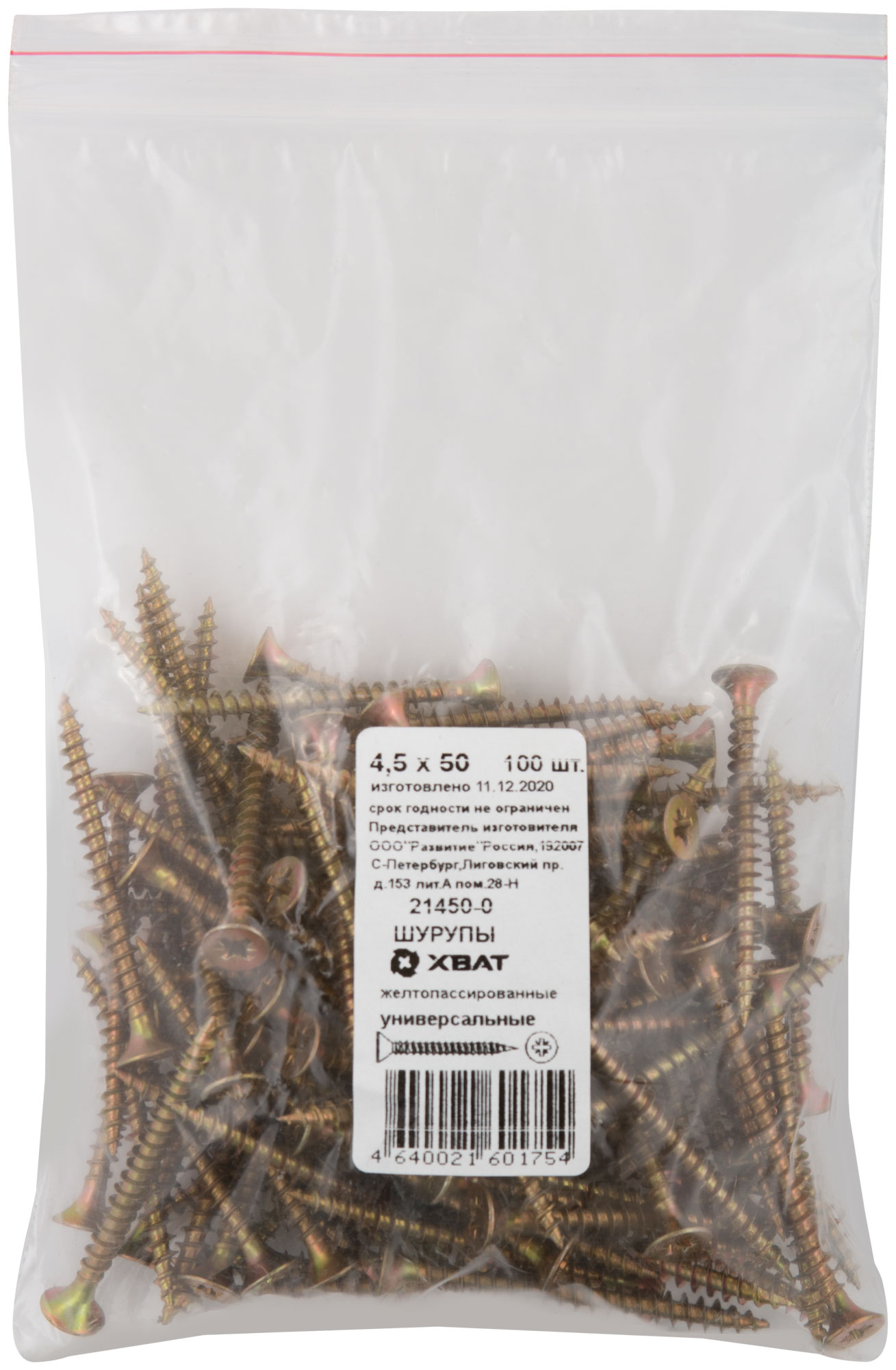Шурупы желтопассированные, универсальные 4,5 х 50 100 шт Фасовка
