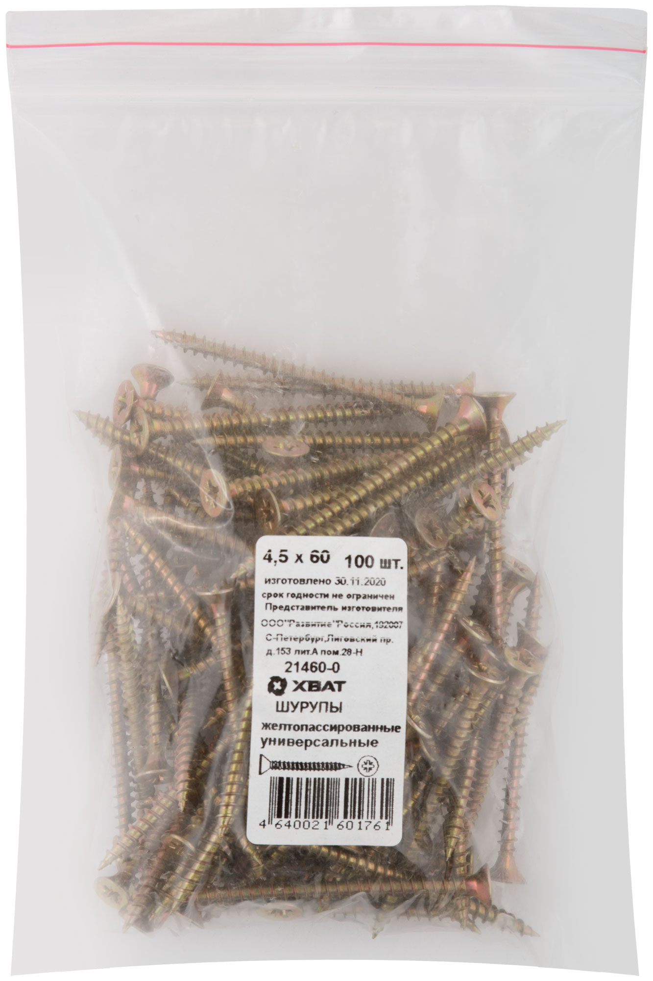 Шурупы желтопассированные, универсальные 4,5 х 60 100 шт Фасовка