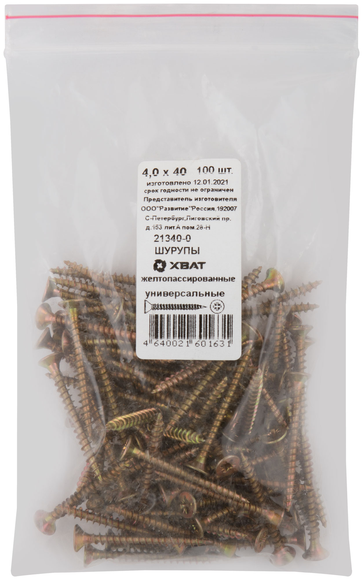 Шурупы желтопассированные, универсальные 4 х 40 100 шт Фасовка